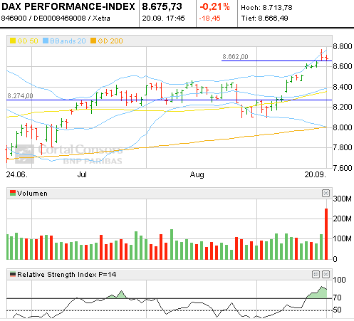Das brachte Dax zu einem Schlusskurs unter die 8.660er Marke. Mit 8.657 Punkten endete Dax vorsorglich im Abwärtsmodus.