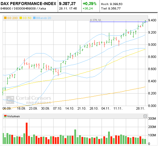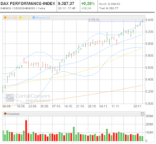 Es ist schon erstaunlich! Dax konnte heute das avisierte maximale Kursziel bei 9399,63 Punkten erreichen.