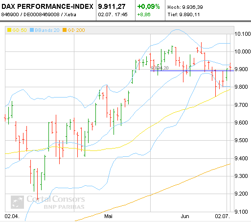Ob man Dax zum amerikanischen Unabhängikeitstag 10.000 Punkte schenken mag? Vielleicht, wenn man die erbosten Gemüter über juristische Willkürakte, wie gegen Telekom und europäische Banken, beruhigen möchte.