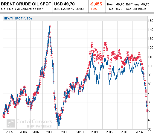 Öl nähert sich für beide Sorten langsam einem Gleichstand. Ich erwarte diesen im Bereich von 46 bis 47 US-Dollar. Sobald er erreicht ist, könnte sich der Öl-Markt etwas erholen,