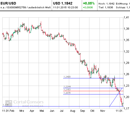 Kann sich Öl preislich erholen, sollte auch Euro etwas anziehen. Wenn es so kommt, dürfte die europäische Währung bei 1,2170 und 1,225 auf ernstere Widerstände stoßen.