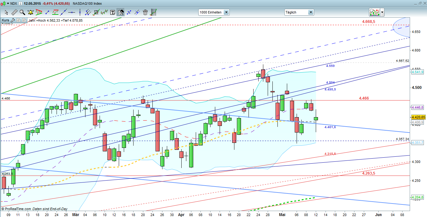 Mehr kann ich heute nicht sagen, denn auch Nasdaq ließ, wie S&P, alle Fragen offen, nachdem er, immerhin, ein riesiges bearisches Island Reversal Gap, das zu Handelsbeginn gerissen wurde, schließen konnte.