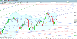Zwei Dinge werden Dax zu schaffen machen: Das Beschleunigungs-Gap des Dienstaghandels unter dem Doji und der Verfallstermin am kommenden Freitag. Beides zusammen könnte Dax tiefer treiben als wir es mögen. Fällt Dax dabei auf Neumond zu, käme ein drittes hinzu, was besonders tiefe Kurse in Erscheinung bringen würde. Sie erinnern sich an den 17.April, wenn Sie, liebe Leser, das jetzt lesen.