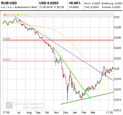 Die Frage ist nur, wird dies auch Dax positiv berühren? Setzt man nicht nur an der Moskauer Börse auf Währungsgewinne, sondern zukünftig auch in Europa? Wenn ja, ab wann? Wenn Euro wieder über seiner 200-Tagelinie notiert?