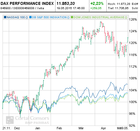Mir ist völlig rätselhaft, wie er das erreichen könnte. Vielleicht nur durch die Kraft magischer Drahgi-Hände, die Staatsanleihen für die EZB bei anderen Käufern einsammeln? Die Gefahr einer Korrektur ist noch nicht vom Tische, schaut man nach Amerika.