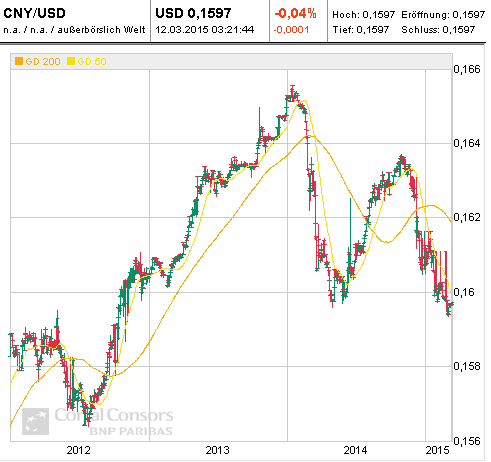 Die chinesische Währung bleibt in derTendenz fallend; sicherlich für Amerika keine günstige Entwicklung. Euro steht jetzt schon tiefer als im Juni 2012, wo die chinesiche Währung erst noch hin will. Damals musste ein starker Euro retten, heute umgekehrt.